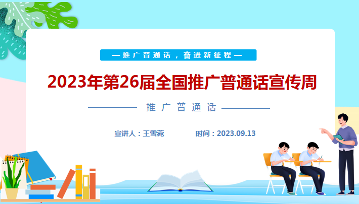 组织全体学生开展了“推广普通话,奋进新征程”主题讲座活动。主讲老师王雪菀围绕“推广普通话,奋进新征程”这一主题,从“为什么要推广普通话”“普通话知识一起学”“如何讲好普通话”“推广普通话,奋进新征程”四个方面进行了深入浅出的讲解,指出同学们在日常学习中要主动推动国家通用语言文字的普及和宣传,时刻注意自己的口语发音,并且能和周围的同学相互督促,积极使规范用语成为一种自觉行为。