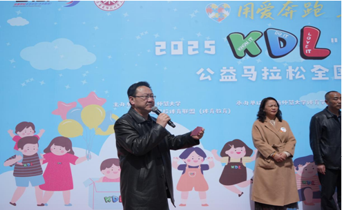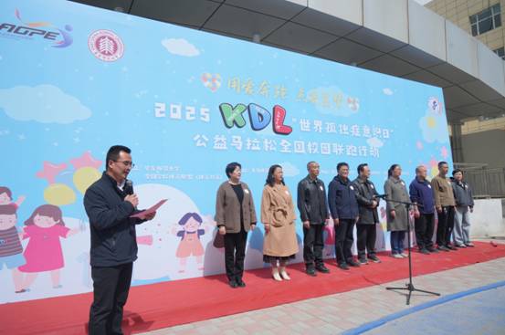学院党委书记李强宣布“高原雪豹 爱心联跑”——2025KDL“世界孤独症意识日”公益马拉松全国校园联跑青海站活动正式开幕,并为活动鸣枪开赛。