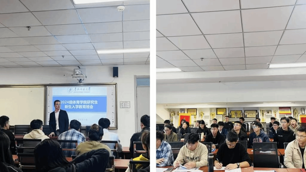 曹乐意副院长首先对2024级新生的到来表示热烈的欢迎,同时对同学们今后的学习与生活提出了殷切的期望和建议。曹乐意副院长指出,研究生阶段不仅是学术知识的积累,更是个人成长和能力提升的关键时期。要成为一名合格的研究生,第一,要全面掌握本专业的核心理论知识,并通过查阅文献、学术交流等方式不断拓展知识面;第二,要积极参加学术活动,了解科学发展动态,并及时定期向导师汇报研究进展,从而培养自己独立开展研究的能力;第三,要有明确的职业目标,找准职业的定位,培养自身的创新能力、合作能力和时间管理能力,不断提升综合素质和能力水平。最后,曹乐意副院长号召全体研究生 ,要努力提高自身的竞技水平,把专项技术熟练的运用到社会实践中,为体育强国建设和推动全民健身高质量发展贡献青春力量。