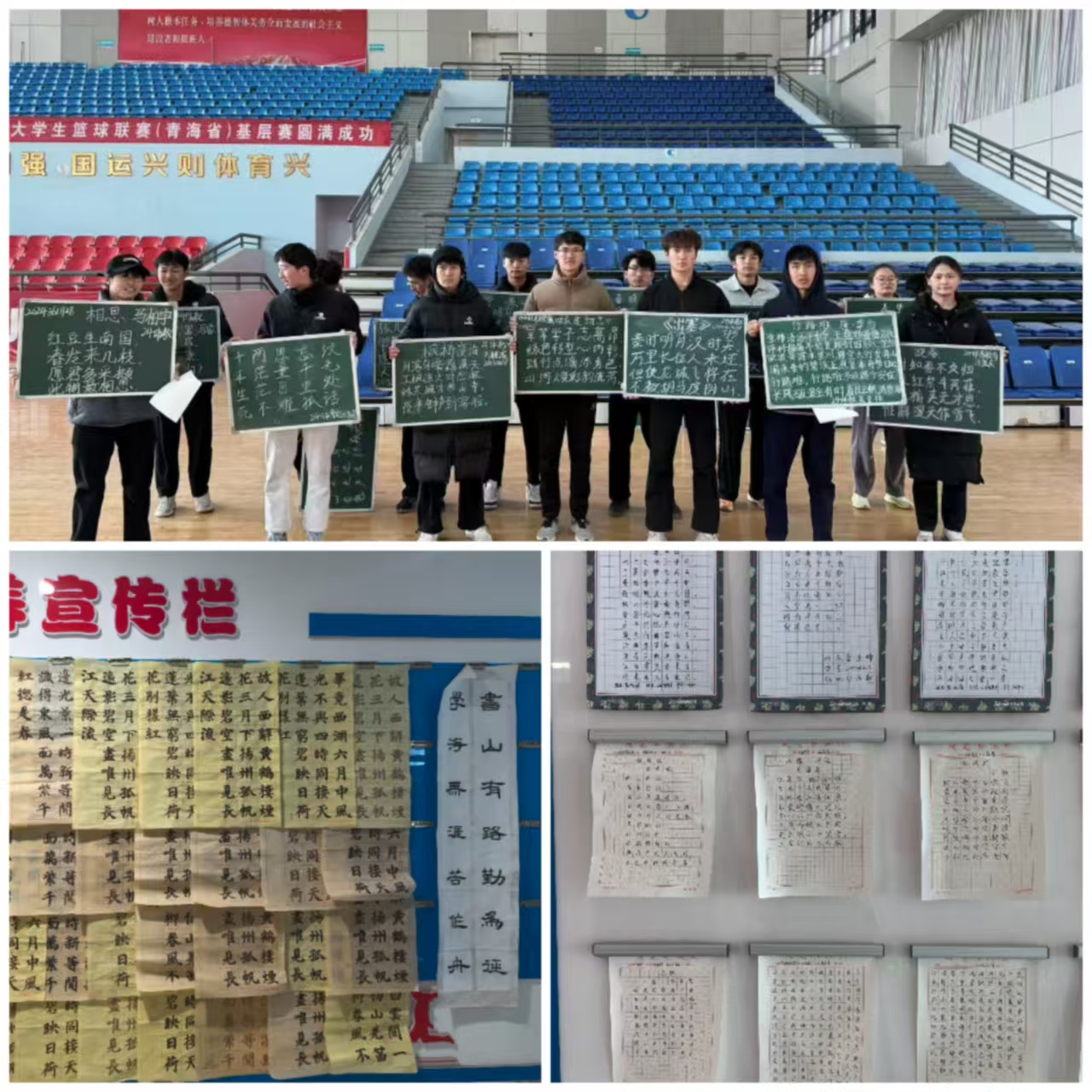 此次展示活动共收到在校六十多名体育教育专业师范生的158件作品,其中毛笔字33件,钢笔字80件,粉笔字45件,展示地点为体育馆一楼。